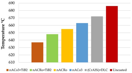 - the lowest temperature stress in the contact zone is provided at milling EP99—nACo3+TiB2 and EK61—nACRo+TiB2.