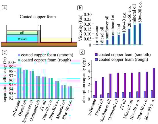 - Haiyan, Z.; Doudou, L.; Mingjuan, C.; Xinquan, Y.; Youfa, Z. Sprayed superamphiphilic copper foams for long term recoverable oil-water separation. Surf. Coat. Technol. 2018, 334, 394–401. [Google Scholar] [CrossRef]
