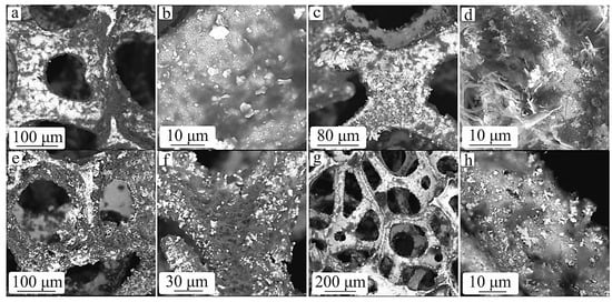 3.1. Analysis of the Developed Morphologies on Coated Copper Foams