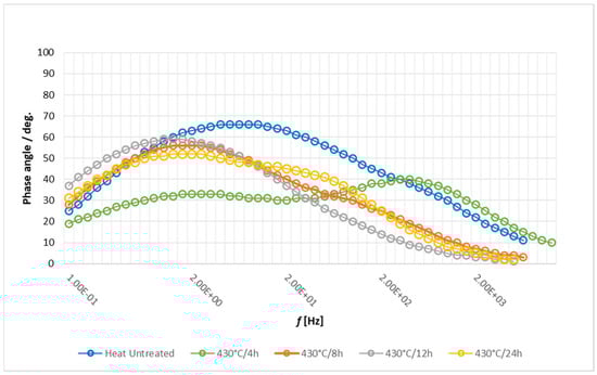 Phase angle as a function of the frequency of heat-untreated and nitrided AS steel AISI 316L.