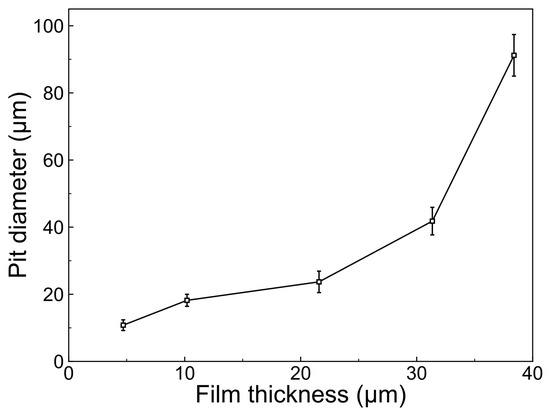 Diameter of the cone-shaped pits on copper films with different film thicknesses.