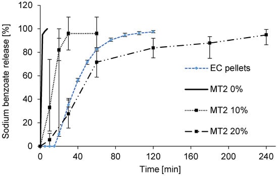 3.3.4. Results for MT2 with Different Ethylcellulose Coatings