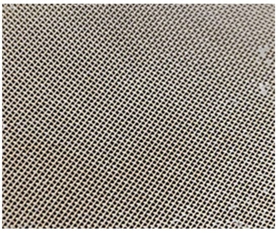 The following materials were used as substrates for titania coating: 304 stainless-steel woven wire mesh 80 (aperture size: 0.18 mm), mesh 100 (aperture size: 0.14 mm), mesh 200 (aperture size: 0.077 mm), mesh 300 (aperture size: 0.044), and mesh 400 (aperture size: 0.030 mm).