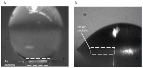 (A) the presence of an air pocket underneath a water droplet. (B) water droplet in complete contact with the substrate.