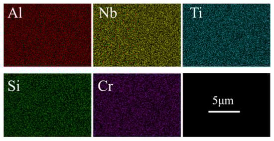 EDS mapping of different elements on the surface of the AlCrNbSiTi HEA coating deposited at the bias of 100 V.