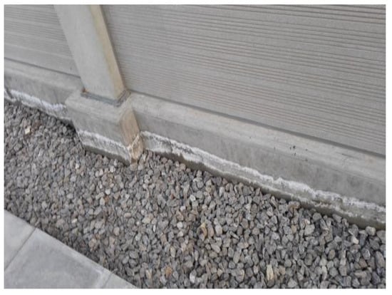 At the forefront of safeguarding national security and fostering a sustainable, clean energy supply, the State Grid Corporation of China stands as a linchpin in the realm of energy and power. Its swift and efficient energy transmission holds a pivotal role in the broader energy supply ecosystem. Within this landscape, substations emerge as indispensable keystones by ensuring the seamless operation of the power grid. Among these substations, the concrete foundation stands as a linchpin that bridges the upper structure with the bedrock beneath, and thus exerts direct influence over the service lifespan of the entire edifice. However, in Shanxi, this crucial foundation faces the formidable challenges of severe erosion and alkali–aggregate reactions, casting a shadow over both the longevity and aesthetic appeal of concrete structures. Figure 1 illustrates instances of alkali–aggregate reactions, concrete degradation, and surface spalling in the transitional zone of a substation’s concrete foundation in Shanxi Province, China.