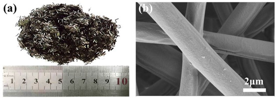 The cement utilized in the study is P.O 42.5 ordinary silicate cement manufactured by Shanshui Group (Jinan, China). The fundamental characteristics of the cement are presented in Table 1 complying with ASTM C-150. The short-cut carbon fiber as the reinforcement in the concrete matrix was obtained from Toray Industries, Japan, and the primary performance indicators are presented in Table 2 and Figure 1. Additionally, the preferred high-efficiency water reducing agent utilized is the polycarboxylic acid type produced by construction material company Jiangsu Botte, which boasts a water reduction rate of 30%.