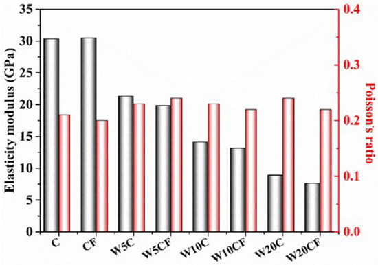 Poisson’s ratio and elasticity modulus of WBE-modified concrete.