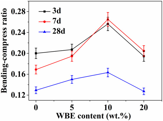 Effect of bending–compressive ratios of WBE-modified concrete with various curing times.