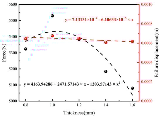 Strength and Failure Displacement Prediction Curves for Different Bond Layer Thicknesses.