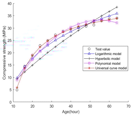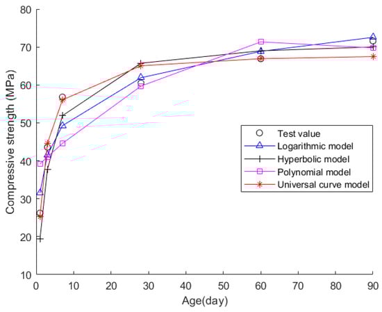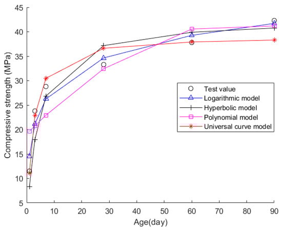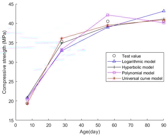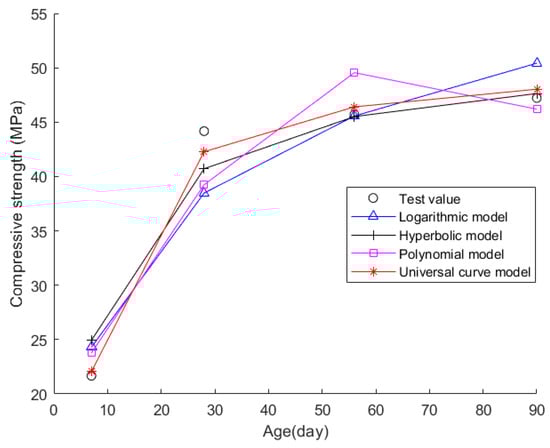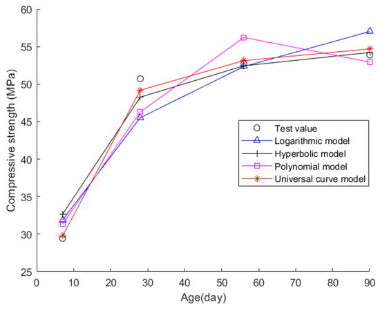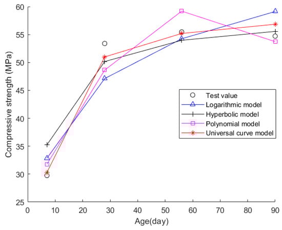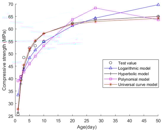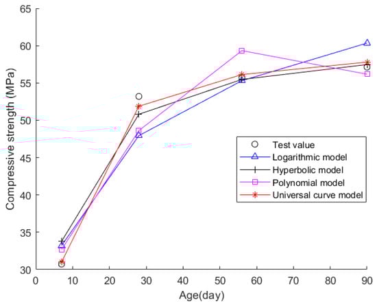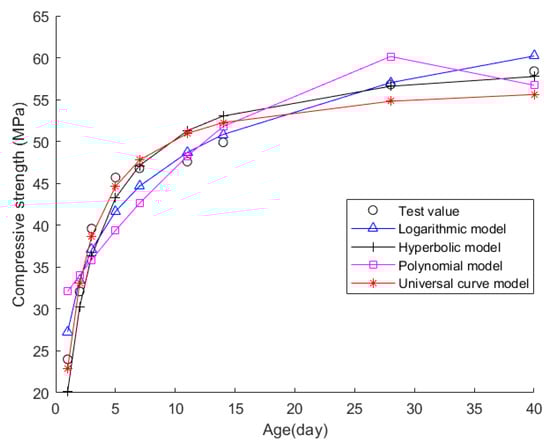 33] fitted the changes in compressive strength of concrete over time using hyperbolic models, thereby establishing a prediction of compressive strength over age of concrete. Jin [
