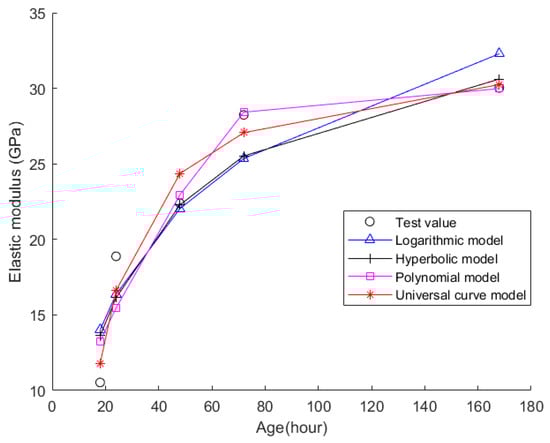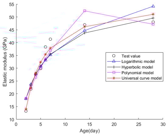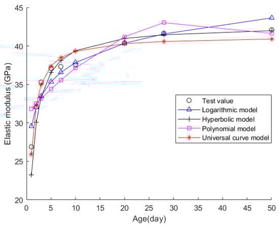 27] tested the compressive strength and elastic modulus of high-strength concrete within 28 days via experiments and proposed an exponential model for data fitting. Zhao et al. [