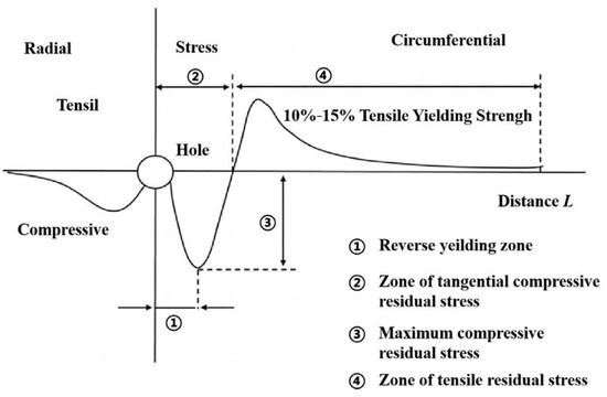 Typical residual stress distribution at a CE hole [37].