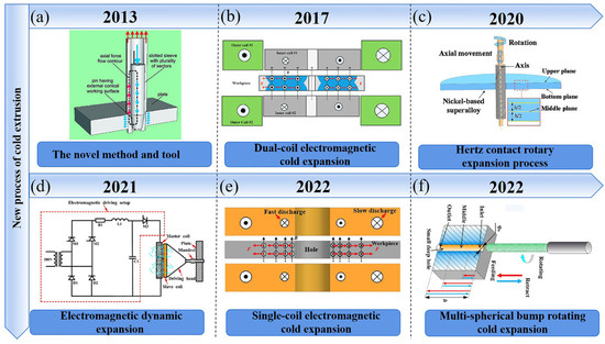 - Zhou, Z.Y.; Fu, J.K.; Cao, Q.L.; Lai, Z.P.; Xiong, Q.; Han, X.T.; Li, L. Electromagnetic cold-expansion process for circular holes in aluminum alloy sheets. J. Mater. Process. Technol. 2017, 248, 49–55. [Google Scholar] [CrossRef]