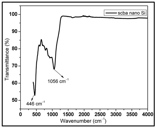 FTIR spectrum showing surface chemistry of SCBA nano silicon.