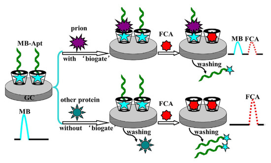 - Yu, P.; Zhang, X.; Zhou, J.; Xiong, E.; Li, X.; Chen, J. Smart protein biogate as a mediator to regulate competitive host-guest interaction for sensitive ratiometric electrochemical assay of prion. Sci. Rep. 2015, 5, 16015. [Google Scholar] [CrossRef]