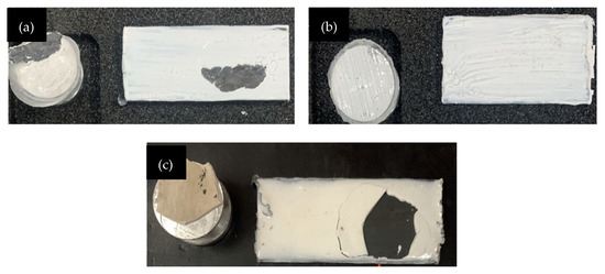 Adhesive failure on coating substrate (a) GP; (b) GPTiO2Zn0.5; (c) GPTiO2Zn0.9.
