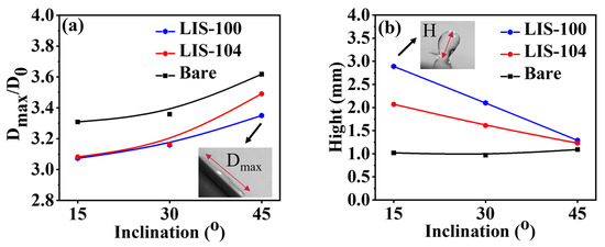 APA StyleLi, B., Fan, L., Bai, J., Xiang, H., & Yuan, Y. (2023). Water-Droplet Impact and Sliding Behaviors on Slippery Surfaces with Various Weber Numbers and Surface Inclinations. Coatings, 13(2), 264. https://doi.org/10.3390/coatings13020264