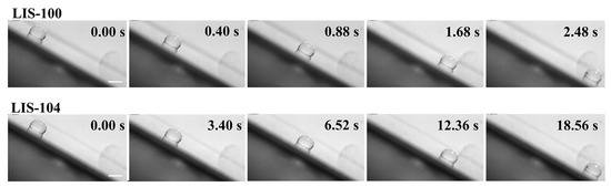 - Kim, J.H.; Rothstein, J.P. Droplet impact dynamics on lubricant-infused superhydrophobic surfaces: The role of viscosity ratio. Langmuir 2016, 32, 10166–10176. [Google Scholar] [CrossRef] [PubMed]