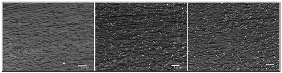 The final coating is prepared by blending the above-described gel in a proportion of 1:1 with a mixture of glycerol and ethanol that combines the properties of the two solvents and reaches a good compromise between volatility and applicability. As expected, the viscosity values obtained for the new formulation and for the commercial products (i.e., Paraloid® and Proconsol®) are different, in line with their different chemical compositions. All the samples present a rheological behavior appropriate to an application by brush: Proconsol® and Paraloid® have an average viscosity value, respectively, of 2 and 3 mPa·s (Table 2), whereas the Chitosan gel with AgNPS showed a higher viscosity (13 mPa·s). This is a promising aspect, which would allow for keeping the chitosan coating on the outer layers without nullifying the properties of the application [42].