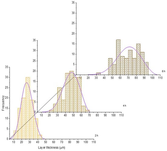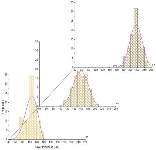 Comparing the resulting layers’ thicknesses with those reported in the literature [27,28], one can notice that they are within the same range, indicating that the process was applied appropriately.