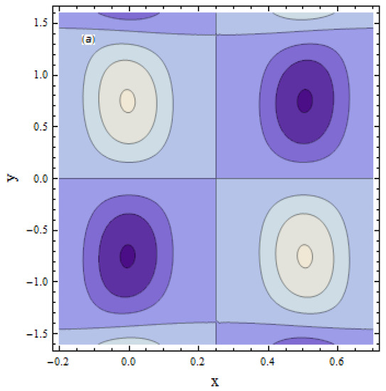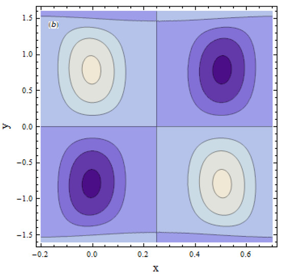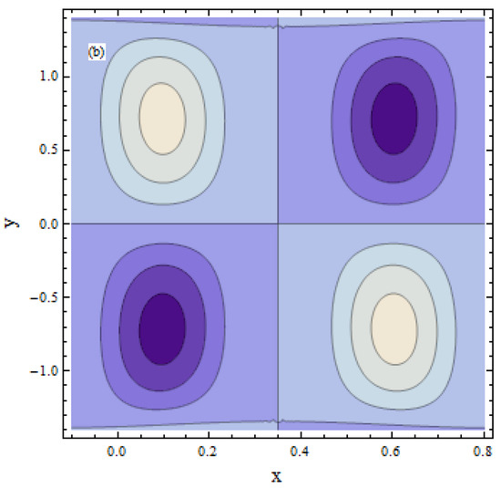 Plots for the trappings are drawn in Figure 23 and Figure 24. Figure 23a,b is plotted for the Weissenberg number From this Figure, we noticed that the size of the bolous increases. Figure 24a,b is plotted to see the impact of the Hartman number; as we can see, an increment in the Hartman number increases the size of the bolus.