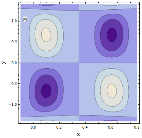 The continuity in Equation (5) is automatically satisfied. In the above expression, we witnessed that the small Reynolds number and large wavelength suppositions [2] are invoked. Here, Re and are ratio of amplitude, wave number, Eckert number, Reynolds and Prandtl numbers, Hartman number, Schmidt number, Brinkman number, Brownian motion variable, thermophoresis parameter, Weissenberg number, radiation parameter, elasticity parameters, concentration Grashof variable, Bioconvection Peclet number, Bioconvection Grashof number, thermal Grashof number, and viscosity ratio parameter, respectively. These are defined by