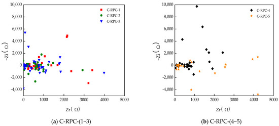 Figure 12 displays the electrochemical impedance spectroscopy of specimens. The imaginary component (-Zi) and the real component (Zr) represent electrical reactance and Re respectively. Table 4 shows the abscissa of the extreme point after removing individual points. It can be found that Re increases with the increasing ratio of steel fibers with AR-30. Moreover, the distribution of points becomes dispersed. The reason for this phenomenon may be that the increase of steel fibers with AR-30 will reduce the number of steel fibers, leading to the decrease of dispersion of steel fibers. The electrical conductivity decreases in RPC [38].