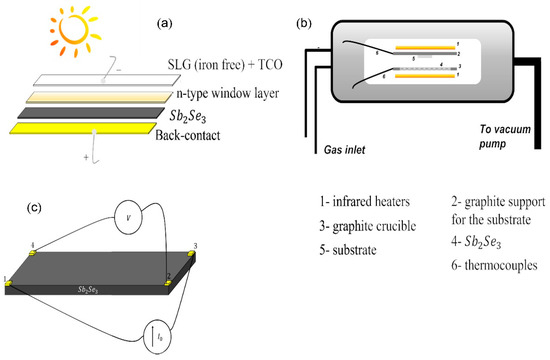 - Mavlonov, A.; Razykov, T.; Raziq, F.; Gan, J.; Chantana, J.; Kawano, Y.; Nishimura, T.; Wei, H.; Zakutayev, A.; Minemoto, T.; et al. A review of Sb2Se3 photovoltaic absorber materials and thin-film solar cells. Solar Energy 2020, 201, 227–246. [Google Scholar] [CrossRef]