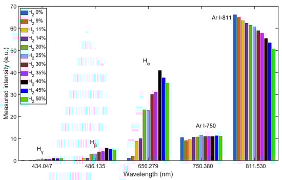 Measured intensity shift of Ar/H2 plasma with different mixing ratios.