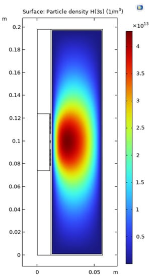Simulated H(3s) density distribution (with 35% H2, at pressure of 5 Pa and power of 165 W).