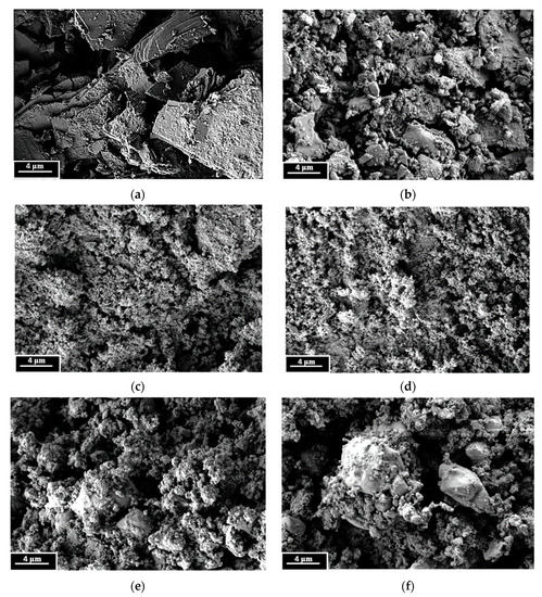 The morphology of the obtained powders after the synthesis and after the disaggregation process is presented in Figure 2.