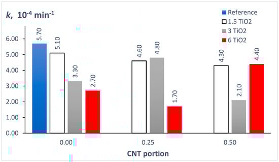 | Photocatalysis with 3TiO2–0.25CNT@PETG static mixer | |||