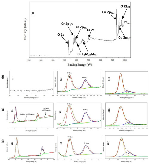 - Biesinger, M.C.; Brown, C.; Mycroft, J.R.; Davidson, R.D.; McIntyre, N.S. X-ray photoelectron spectroscopy studies of chromium compounds. Surf. Interface Anal. 2004, 36, 1550–1563. [Google Scholar] [CrossRef]