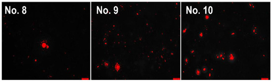 Figure 8 shows the images of the micro-organisms attached to the LCC specimens No. 8, 9, and 10; while the microbial attachment rates are presented in Figure 9.