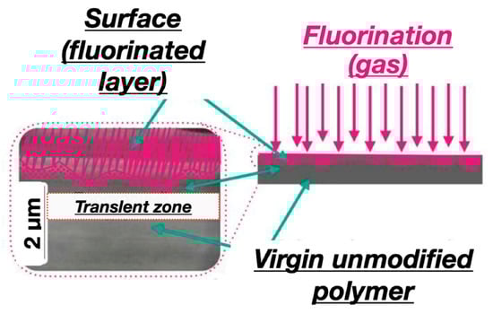 - Kharitonov, A.P. Direct fluorination of polymers-From fundamental research to industrial applications. Prog. Org. Coat. 2008, 61, 192–204. [Google Scholar] [CrossRef]