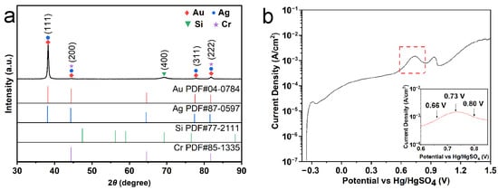 Characterization of the as-prepared Au-Ag film. (a) XRD diffractogram. (b) Potentiodynamic polarization curve.