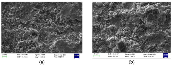 Subsequently, the elemental composition of the valve plates with the two gradients was also analyzed. The surface condition of the common valve plates is shown in Figure 7a, and the clustered metal distribution can be observed. The ZnO element distribution of the high-gradient valve plates was more uniform (the dark parts), as shown in Figure 7b.