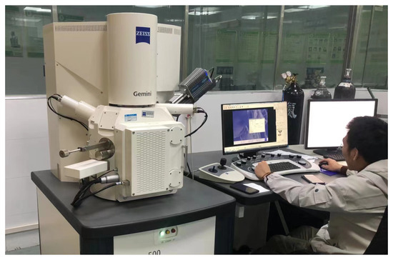 In order to observe the distribution of WER on the aggregate surface of the micro-surfacing slurry, a scanning electron microscope (SEM) test was performed (shown in Figure 3). Micro-surfacing slurries using WE/A binder with a WER content of 0%, 5%, 10%, 15% and 20% were mixed. Each micro-surface slurry was mixed and maintained for 48 h at a temperature of 25 °C. Aggregates coated by WE/A separated from the slurry were immersed and washed in trichloroethylene repeatedly, until all the asphalt was dissolved and washed. Then the micro-structure of the specimen was observed using FE-SEM (QUANTA FEG 450, FEI, Hillsboro, OR, USA).
