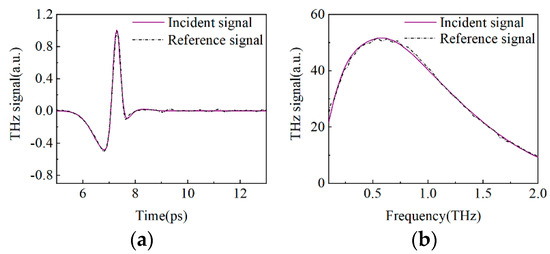 The incident signal compared with the reference signal: (a) Time-domain; (b) Frequency-domain.