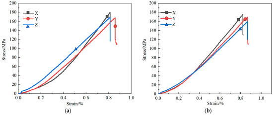 After conducting uniaxial compression experiments on three different rock samples, it was revealed that the stress–strain curves of the specimens showed a common character. The four main stages of the process were defined as compaction, elastic deformation, yield and failure. The gradients of the stress–strain curves of all of the group samples declined, showing that their modulus of deformation decreased significantly in all three freeze–thaw cycle treatments. Moreover, the length of the compaction–deformation stage became longer with an increasing number of weathering cycles, whereas the elastic and yield stages were both shortened. Finally, the yield strength and ultimate strength of the samples decreased with an increasing number of weathering cycles (Figure 7).