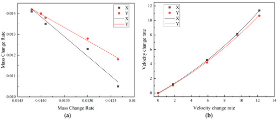 Correlation after X and Y with Z. (a) Correlation between the mass change rates. (b) Correlation between the velocity change rates. (c) Correlation between the uniaxial compressive strengths.