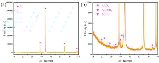 Aluminum and its alloys have been widely applied in various fields, such as aerospace, automobile, and ocean engineering, by virtue of their low density and high stiffness–weight ratios [1,2]. However, aluminum alloys are susceptible to aggressive media in most corrosive environments, especially in the marine environment, resulting in huge economic losses and safety problems [3,4]. Thus, various strategies have been adopted to retard the corrosion rate of alloys, including microarc oxidation [5,6], organic coatings [7,8], chemical conversion coating [9,10], and so on [11,12,13].