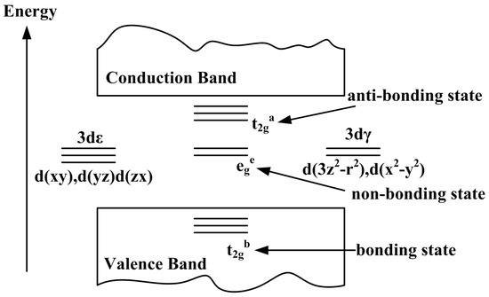 Diluted magnetic semiconductors (DMSs) are a new type of semiconductor material, which exhibited ferromagnetism due to doping with transition metals (TMs). DMSs leverage the charge and spin characteristics of electrons to combine the properties of a semiconductor host with the magnetic characteristics of a dopant, which results in promising magneto-electric and magneto-optical effects. Among the potential applications of DMSs are high-density nonvolatile memory devices, magnetic sensors, spin field effect transistors, optical isolators, semiconductor lasers, and spintronics [1,2,3,4]. Particular attention from researchers is paid to oxide-diluted magnetic semiconductors (ODMSs) that are considered as the main material for fabricating microelectronic devices using electron spin degrees of freedom. At present, most of the ODMS materials are found to possess the ferromagnetic characteristics within or above the room temperature range. Meanwhile, the traditional III–V and II–VI diluted magnetic semiconductor materials are restricted by the antiferromagnetic exchange interaction of TM ions due to the magnetic exchange interaction. A lot of works have proved that the ferromagnetic exchange interaction is difficult to generate through n-type and p-type carrier injection. Thus, this type of diluted magnetic semiconductor materials shows ferromagnetism at low temperatures only, which has no practical significance [5]. Therefore, it is a challenge for modern spintronic device manufacturers to find semiconductor materials that may exhibit ferromagnetism at room temperature [6,7]. In turn, oxide-diluted magnetic semiconductors with a unique set of electrical, electronic, and magnetic properties seem to be promising candidates for the widespread use in spintronics, optoelectronics, microwave devices, magnetoelectronics, memory devices, and solar cells.