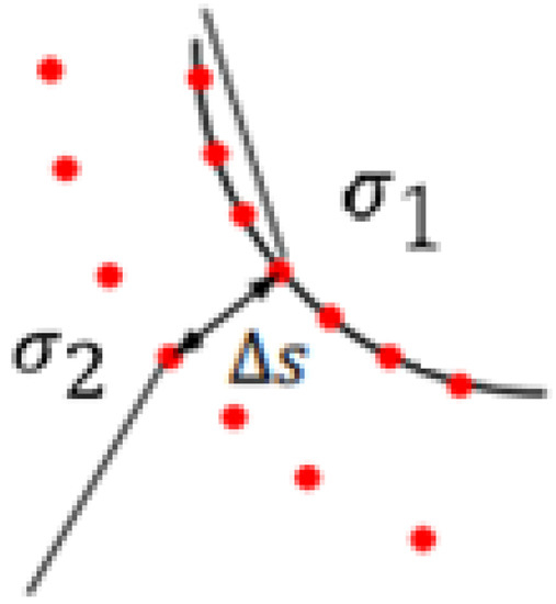 Point of defined stress amplitudes. σ1—internal voltage at the first point. σ2—internal voltage at the second point. Δs—the distance between the points.