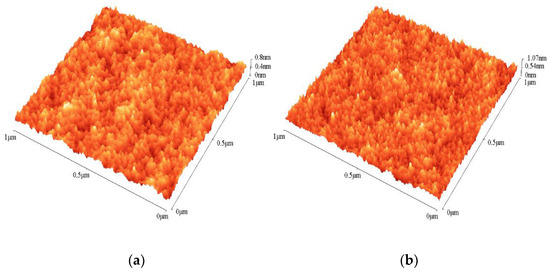 The morphology was evaluated based on AFM images (Figure 2). One can note that the morphology is quite similar for both coatings. Those prepared at 200 °C exhibited a denser structure with fine grains. It should be mentioned that the AFM images were recorded on coatings deposited on Si wafers to avoid disturbances from the roughness of the Mg alloy.