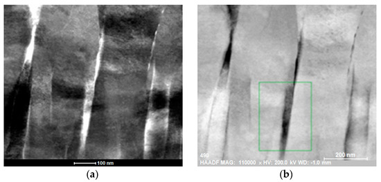Figure 3a,b shows cross-sectional images obtained by HR-TEM of the studied samples. As can be seen, all samples exhibit a columnar structure along the growth direction. In addition, this structure is dense and evenly textured. Energy dispersive X-ray detection (EDX) maps corresponding to the selected area in Figure 3b are shown in Figure 3c. The results indicate the presence of the elements Zn, Ni and O and do not contain other impurity elements, except for Cu and C (from the grid and not shown here). In addition, the data obtained indicate that Ni is evenly distributed in the film and forms a solid solution with the ZnO matrix.