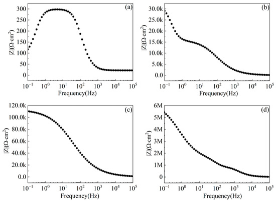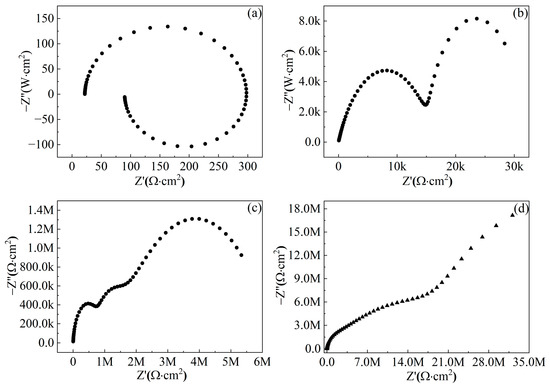 | Rct/Ω·cm2 | 68 | 1.57 × 104 | 4.611 × 106 | 4.493 × 107 |