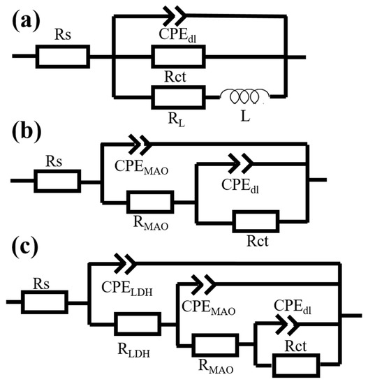 - Dou, B.J.; Wang, Y.Q.; Zhang, T.; Liu, B.; Shao, Y.W.; Meng, G.Z.; Wang, F.H. Growth Behaviors of Layered Double Hydroxide on Microarc Oxidation Film and Anti-Corrosion Performances of the Composite Film. J. Electrochem. Soc. 2016, 163, C917. [Google Scholar] [CrossRef]
