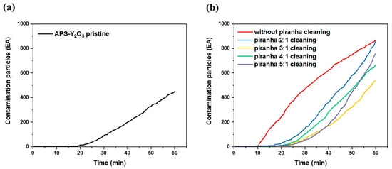 Real-time detection of contamination particles generated from the APS–Y2O3 coating: (a) pristine APS–Y2O3, (b) with and without cleaning with the piranha solution.